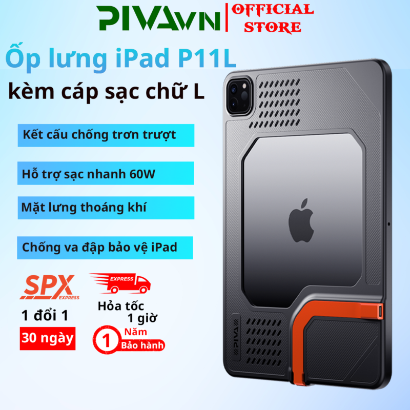 Ốp lưng iPad Pro Piva P11L kèm cáp sạc chữ L bảo vệ chân sạc hỗ trợ sạc nhanh 60W truyền hình ảnh 4K60Hz PivaVN
