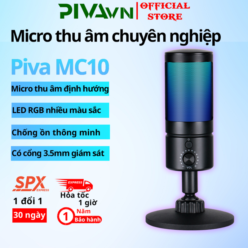 Piva MC10 Micro thu âm chuyên nghiệp công nghệ Mic định hướng chống ồn thông minh cho PC/Điện thoại/Máy tính bảng PivaVN