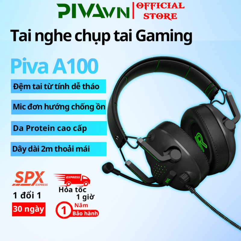 Tai Nghe Gaming Chụp Tai Piva A100 Tai nghe chuyên Game có Micro khử tiếng ồn, đệm tai nam châm dễ dàng tháo lắp PivaVN
