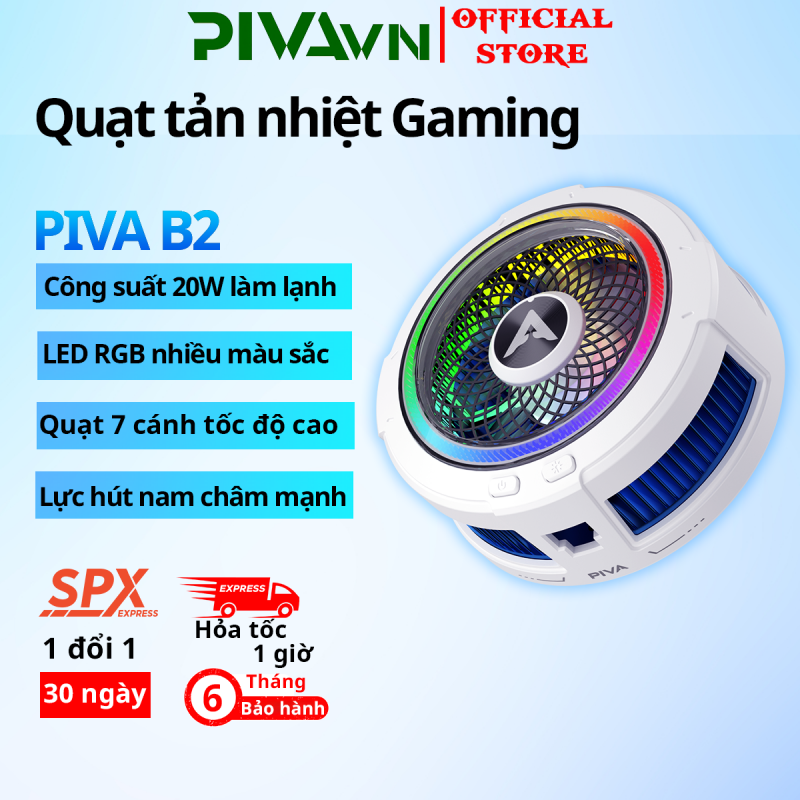 Piva B2 Quạt tản nhiệt sò lạnh bán dẫn hít nam châm cực mạnh kết hợp ngàm kẹp dành cho điện thoại làm mát nhanh LED RGB PIVAVN