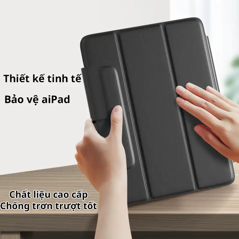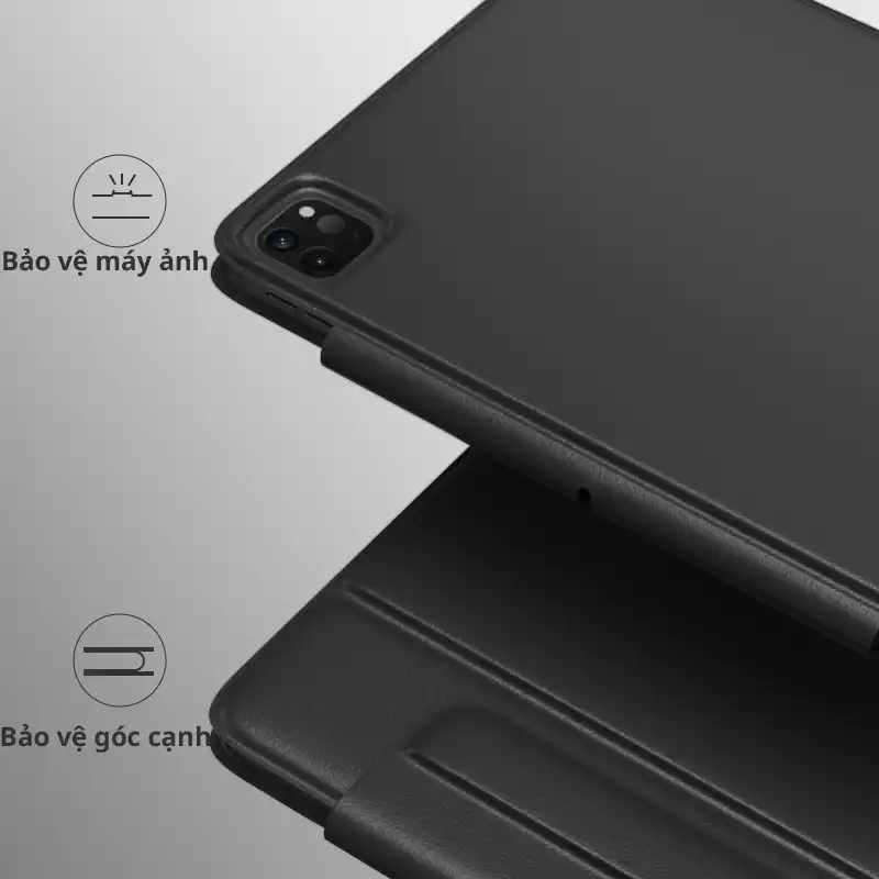 - Chế độ di chuyển: Bao da giúp bảo vệ iPad Pro khỏi va đập và trầy xước.