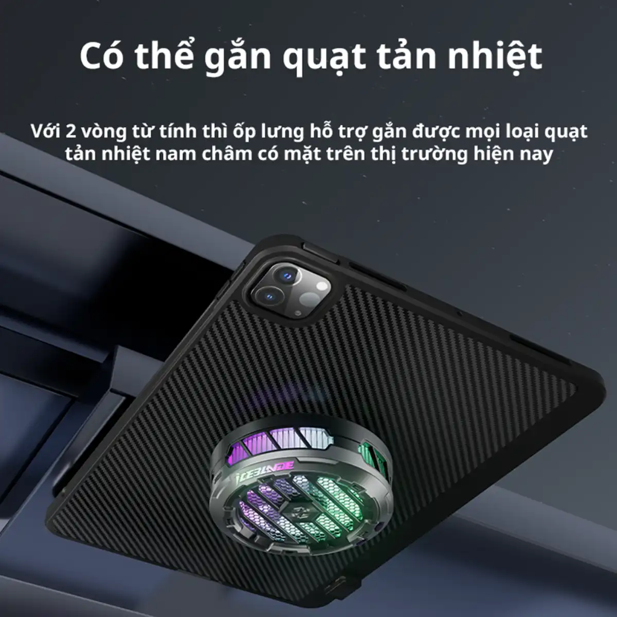 - Tản nhiệt hiệu quả: Ốp lưng tản nhiệt từ tính Piva được thiết kế với hai vòng tròn từ tính cực mạnh trên mặt lưng, giúp bạn dễ dàng lắp đặt các loại quạt tản nhiệt từ tính trên thị trường. Điều này giúp tản nhiệt nhanh chóng, giữ cho iPad của bạn luôn mát mẻ ngay cả khi sử dụng trong thời gian dài, đặc biệt khi chơi game hoặc xử lý các tác vụ nặng.
