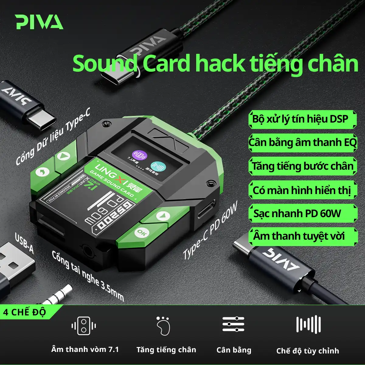 Sound Card Gaming Piva GS200 có 4 chế độ âm thanh chuyên nghiệp