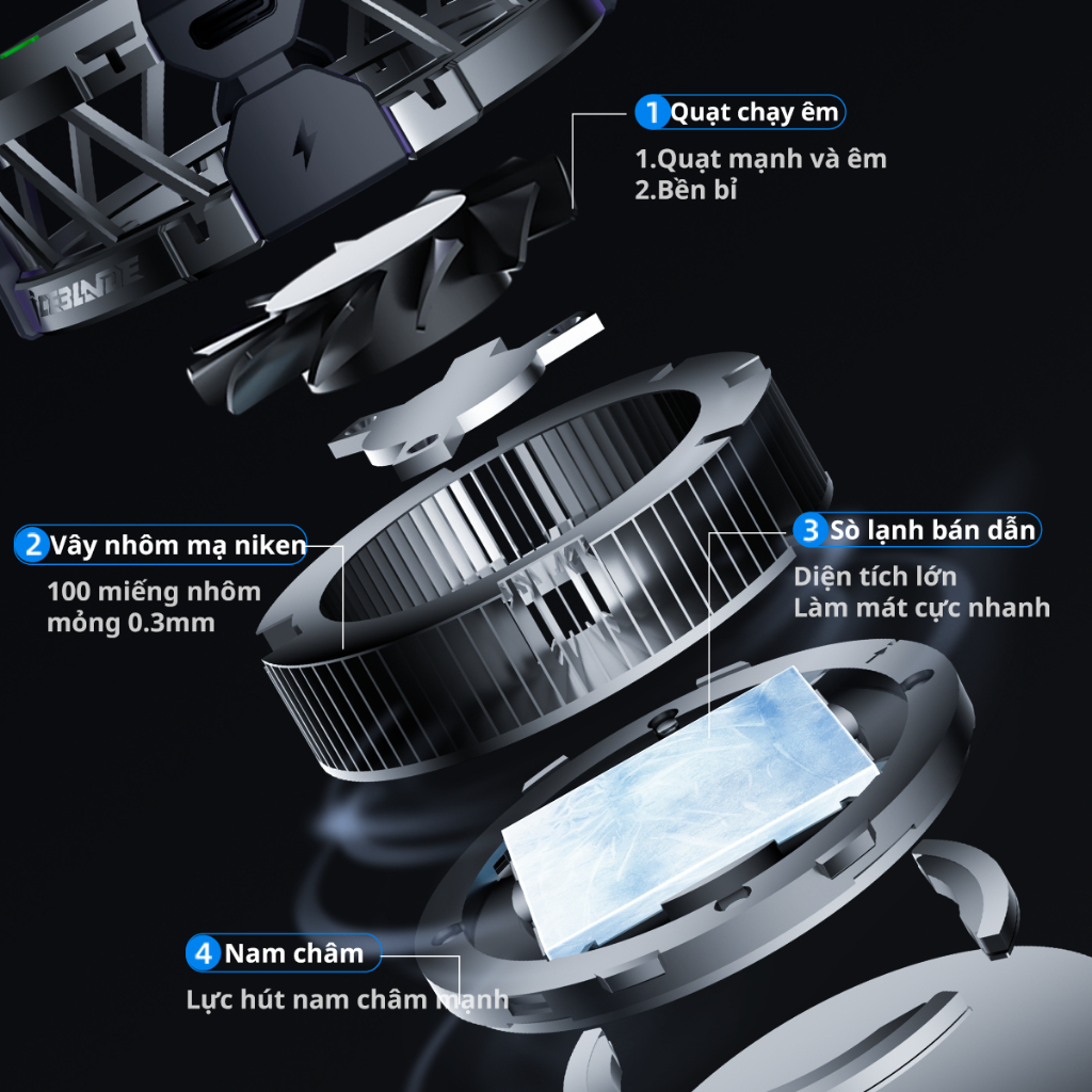 Piva HB5 Pro Quạt tản nhiệt sò nóng lạnh công suất cao 25W Quạt tản nhiệt hít nam châm dành cho điện thoại máy tính bảng