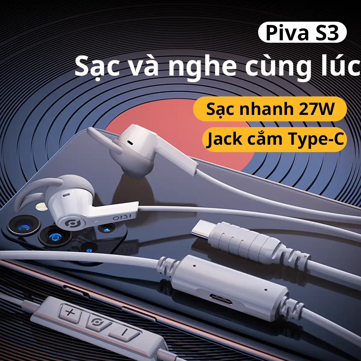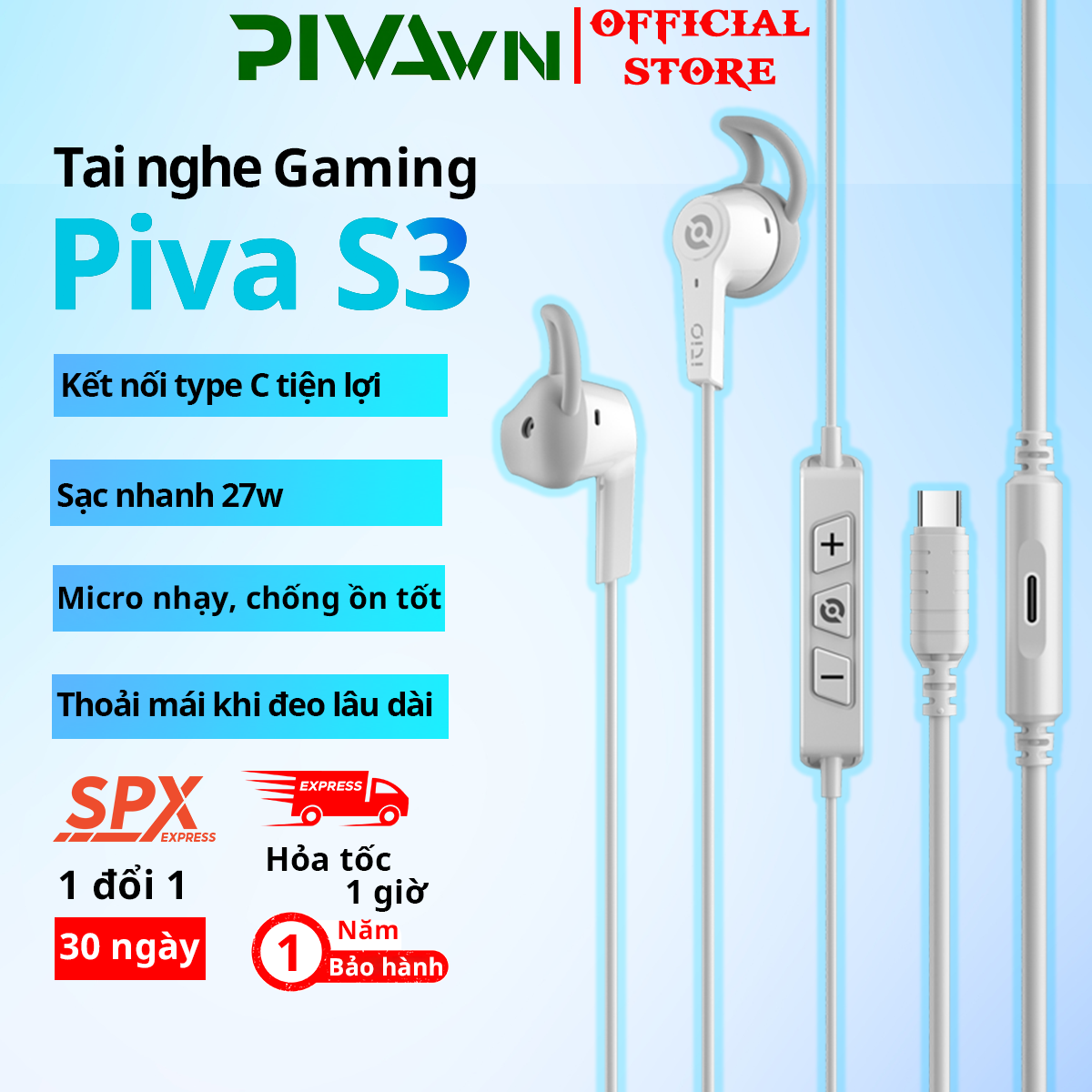 Piva S3 Tai nghe Gaming chính hãng PivaVN chân Type-C/3.5mm tích hợp sạc nhanh 27W Micro đàm thoại chống ồn
