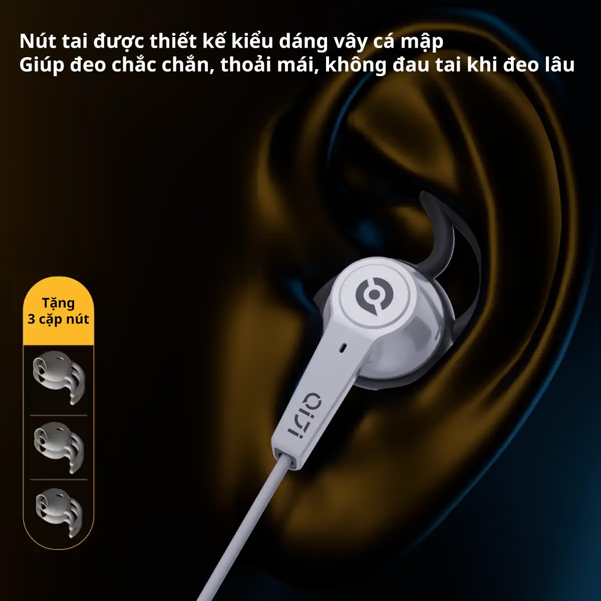 Piva S3 có thiết kế nhỏ gọn, trọng lượng nhẹ chỉ 13g, ôm sát tai mà không gây cảm giác khó chịu. Nút tai silicon mềm mại với thiết kế vây cá mập độc đáo mang đến sự thoải mái tối đa, cho phép bạn chơi game hàng giờ liền mà không lo đau tai.